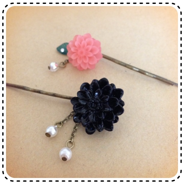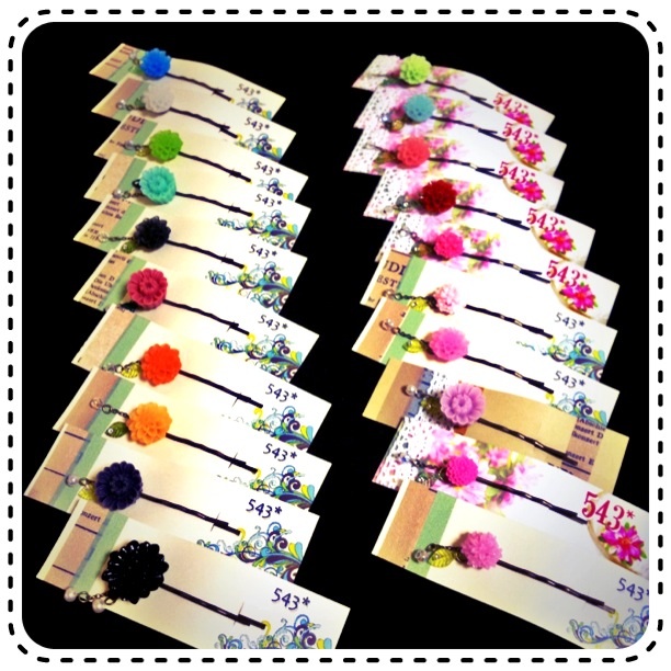 543*定番の上記ヘアピンは、お花の種類や台紙に関係なく、頒布価格は各200円です(´∀`)