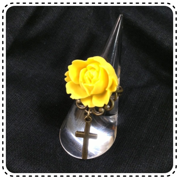 レンくんの黄薔薇&リンちゃんのロザリオをモチーフにした大振りのリングです。