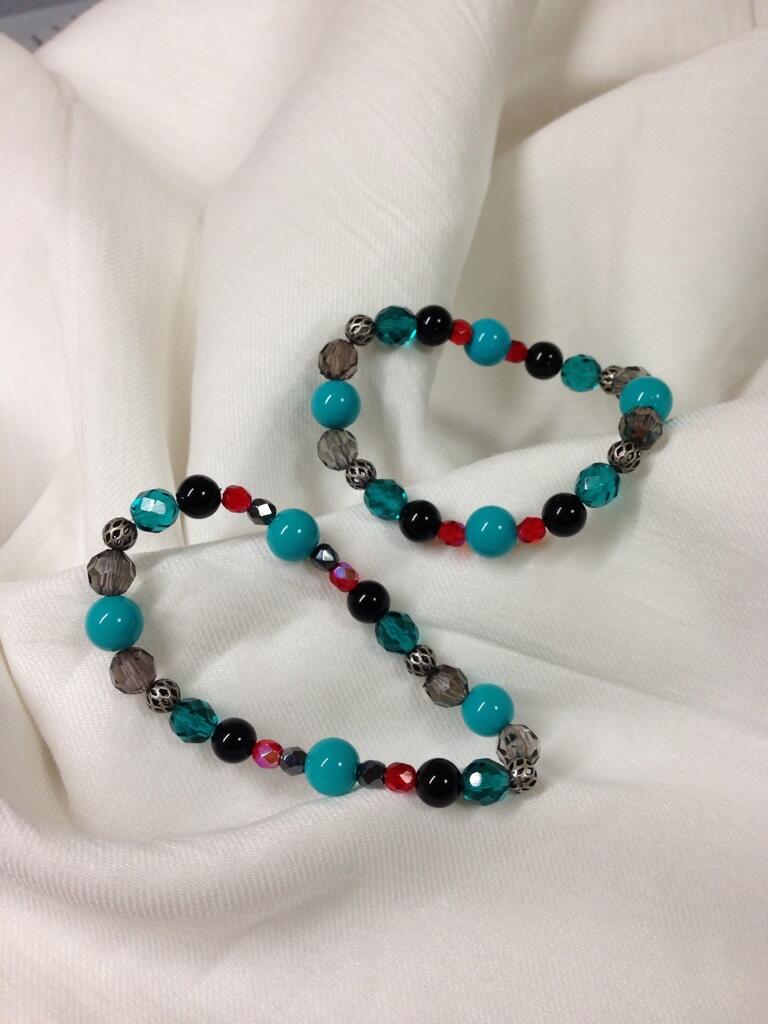 写真では色味が再現されていないのですが、きれいなターコイズグリーンのアクリルビーズを使っています。